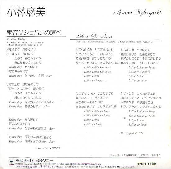 雨音はショパンの調べ/Lolita go home [EP盤] 小林麻美 07SH1489