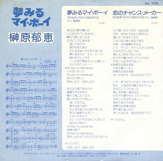 夢みるマイ・ボーイ/恋のチャンス・メーカー [EP盤] 榊原郁恵 AK-705 中古-良い