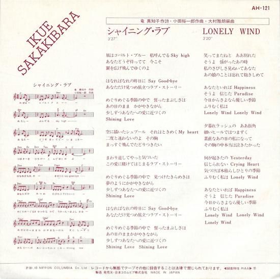 シャイニング・ラブ/LONELY WIND [EP盤] 榊原郁恵 AH-121 中古-良い