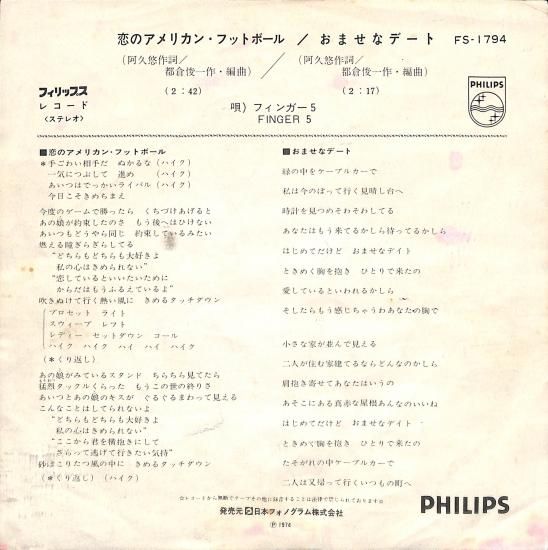 恋のアメリカンフットボール/おませなデート [EP盤] フィンガー5 FS-1794中古-良い