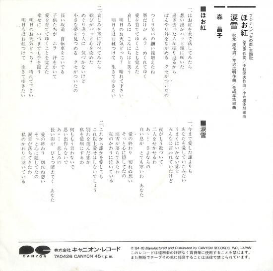 ほお紅/涙雪 [EP盤] 森昌子 N・10・5 中古品-良い
