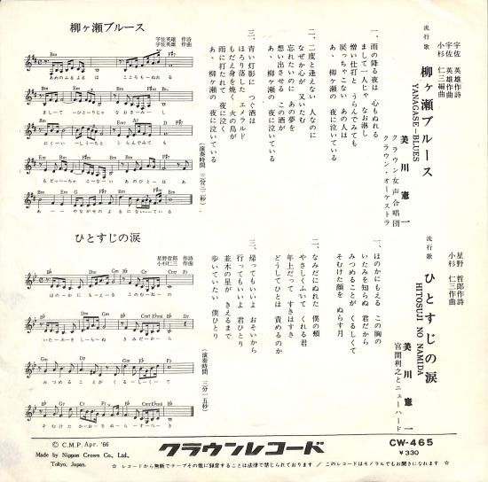 柳ヶ瀬ブルース/ひとすじの涙 [EP盤] 美川憲一 CW-485 中古品-良い