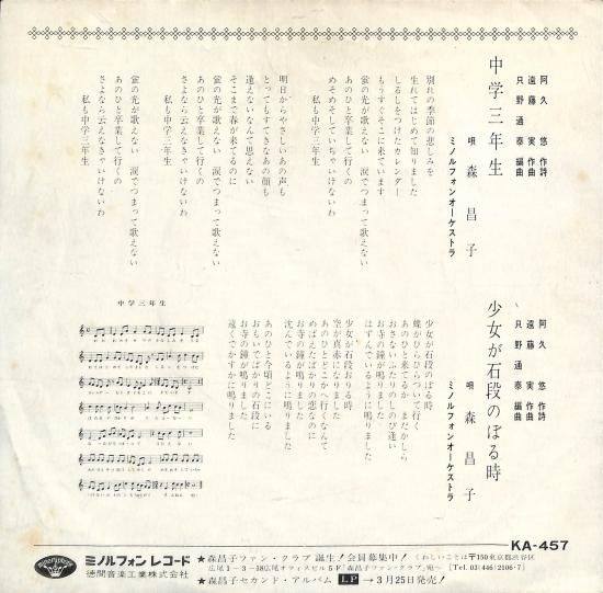 中学三年生/少女が石段のぼる時 [EP盤] 森昌子 KA-457 中古品-良い