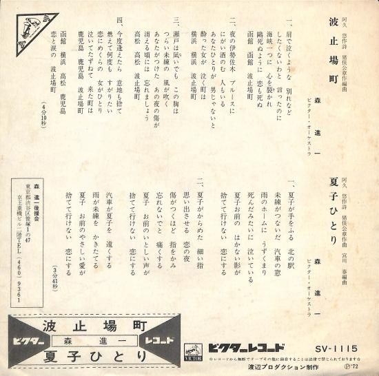 波止場町/夏子ひとり [EP盤] 森進一 SV-1115 中古品-良い