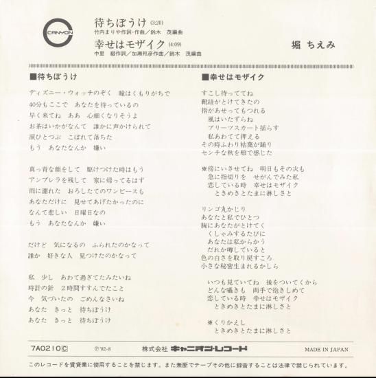 待ちぼうけ/幸せはモザイク [EP盤] 堀ちえみ 7A0210 中古品-良い